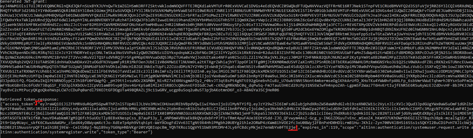 Du vil da få et accesstoken som du skal bruke i forespørselen mot Altinn.